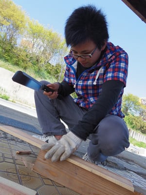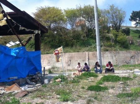 この日は「がんばろう!石巻」の看板と同じ地区にできた「いしのまきありがとうハウス」へお手伝いに行きました。
