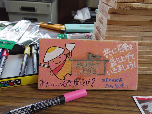 私はプレートに「共に石巻を盛り上げていきましょう」というメッセージと共に、